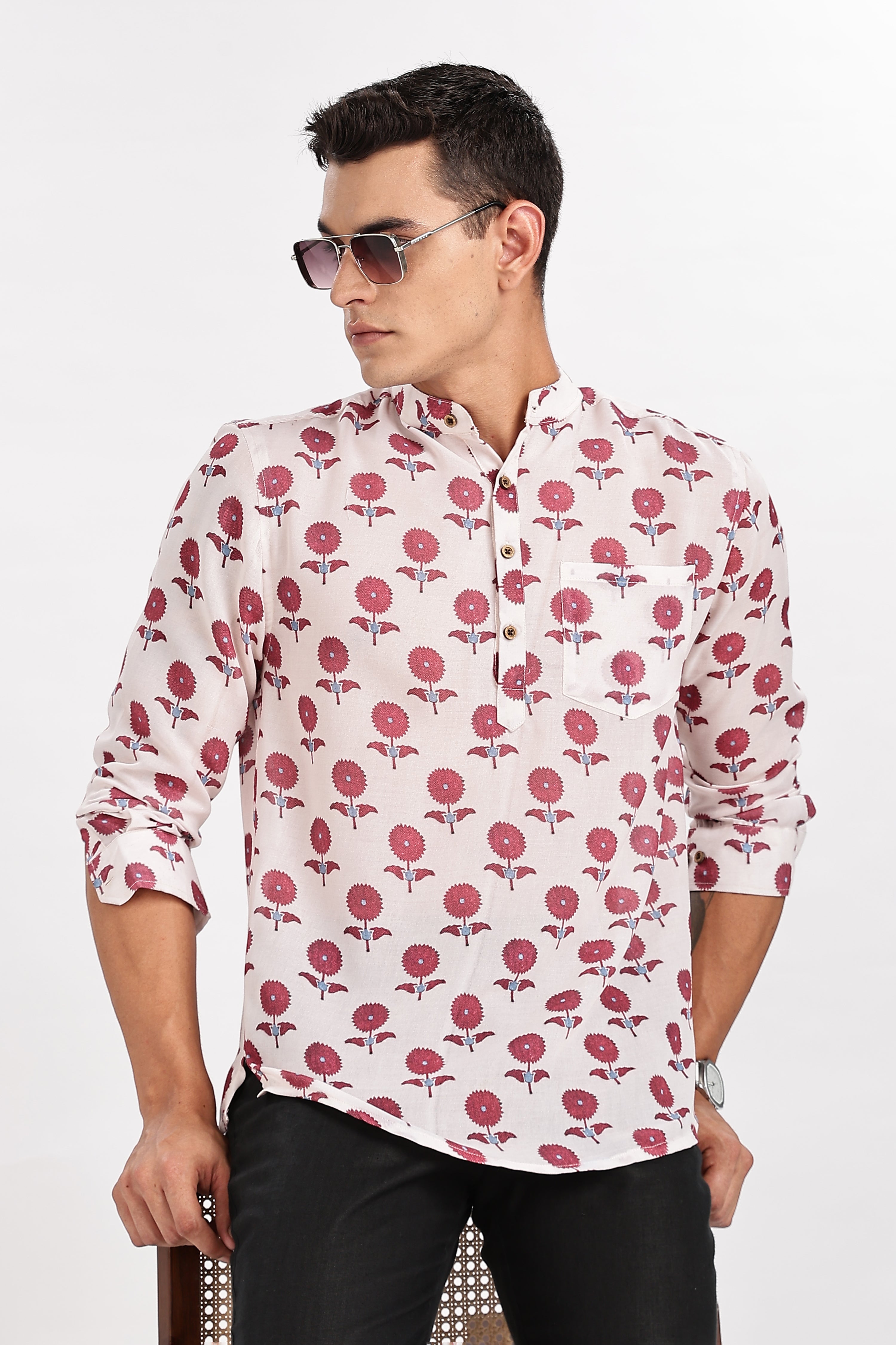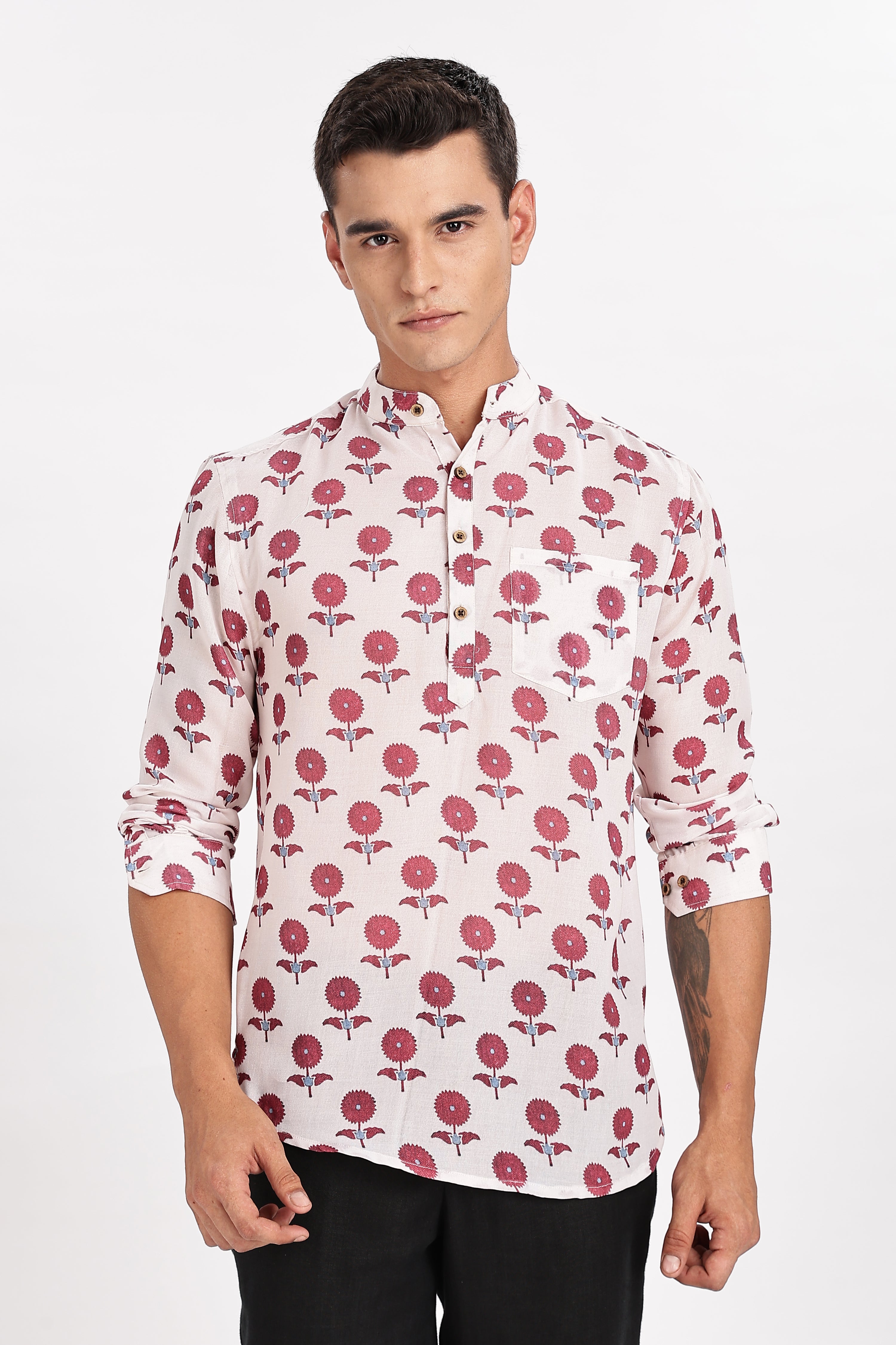 Floral White Short Kurta